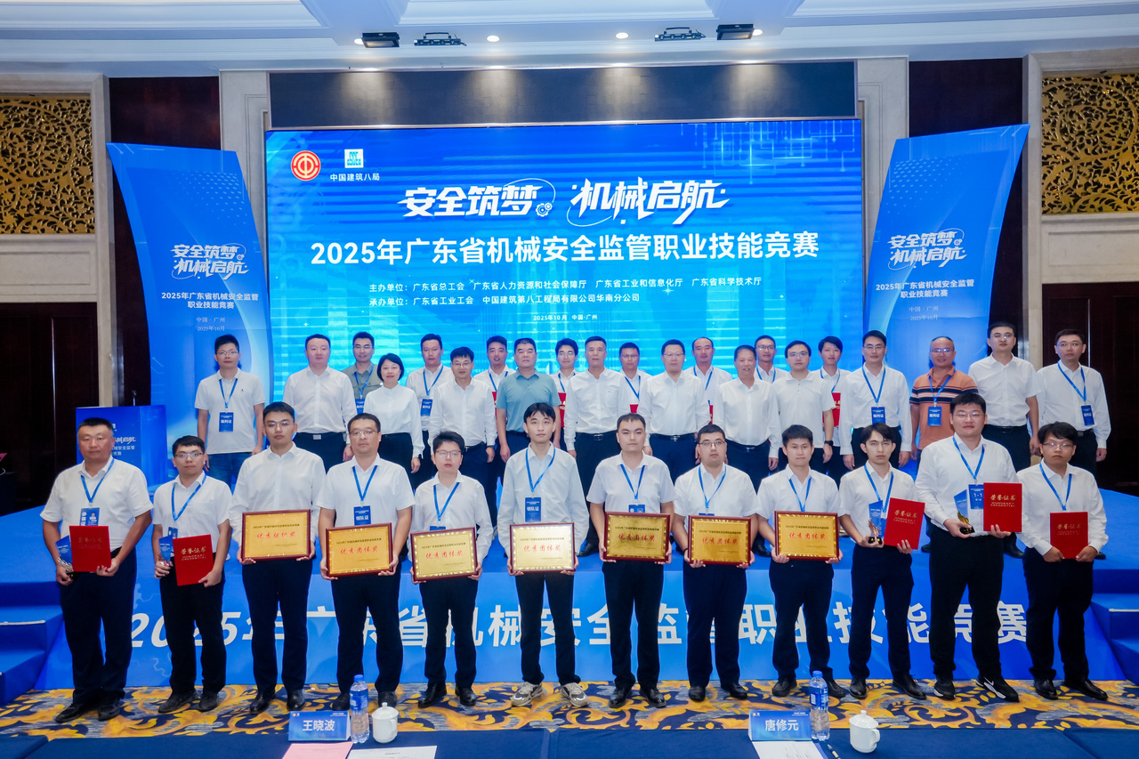 10月16日,2025年广东省机械安全监管职业技能竞赛在广州东部公铁联运枢纽一期SG04标项目举行。本次竞赛由广东省总工会、广东省人力资源和社会保障厅、广东省工业和信息化厅、广东省科学技术厅联合主办,广东省工业工会、中建八局华南公司工会共同承办,为全省建筑机械安全领域搭建起“以赛促学、以赛验技”的专业竞技平台。广东省工业工会领导以及比赛选手、一线职工代表等140余人参加活动。