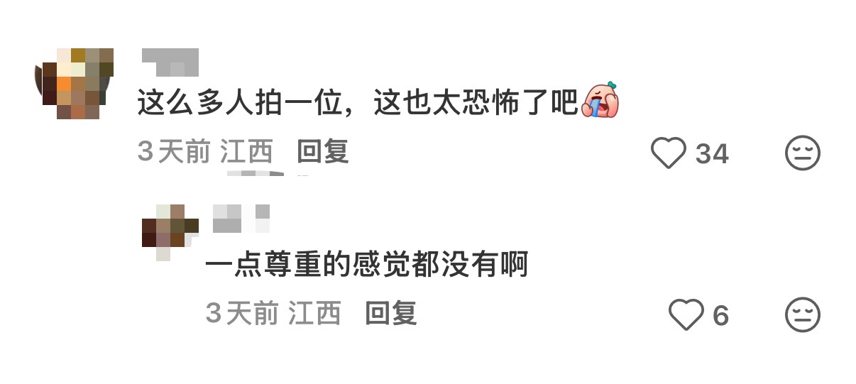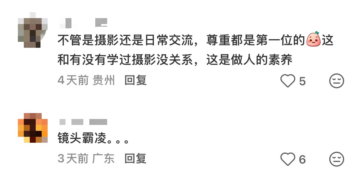 不少网友感到愤怒,认为这种行为已经不是摄影,而是一种“镜头霸凌”,“这像一场围猎”“是对别人的侵犯”。